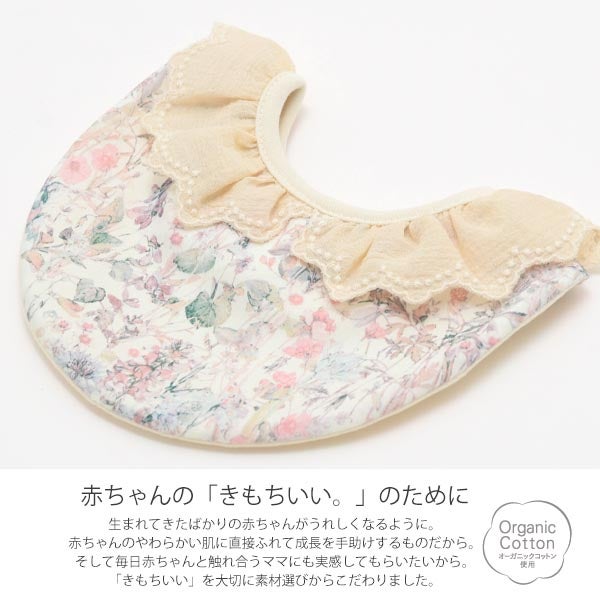 オーガニックコットン 吊天竺レース付きスタイ リバティ