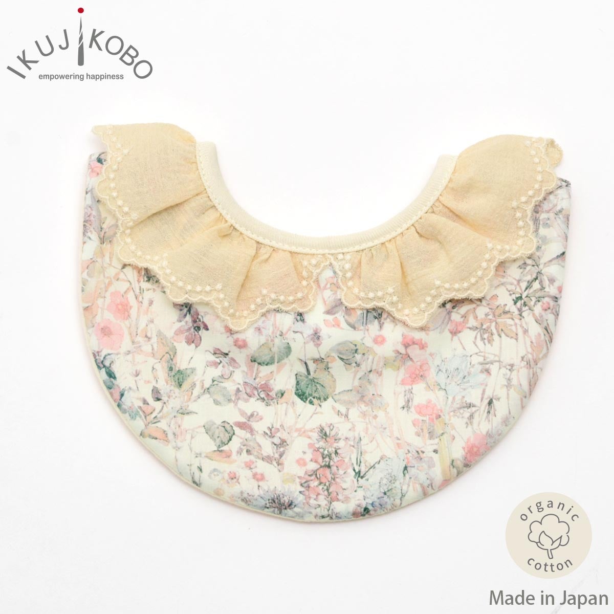 オーガニックコットン 吊天竺レース付きスタイ リバティ
