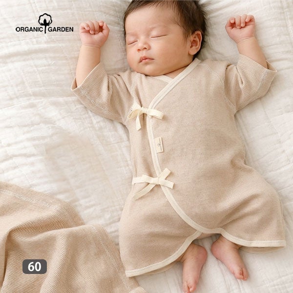 化学処理を行わず仕上げた、オーガニックコットン100%のコンビ肌着。