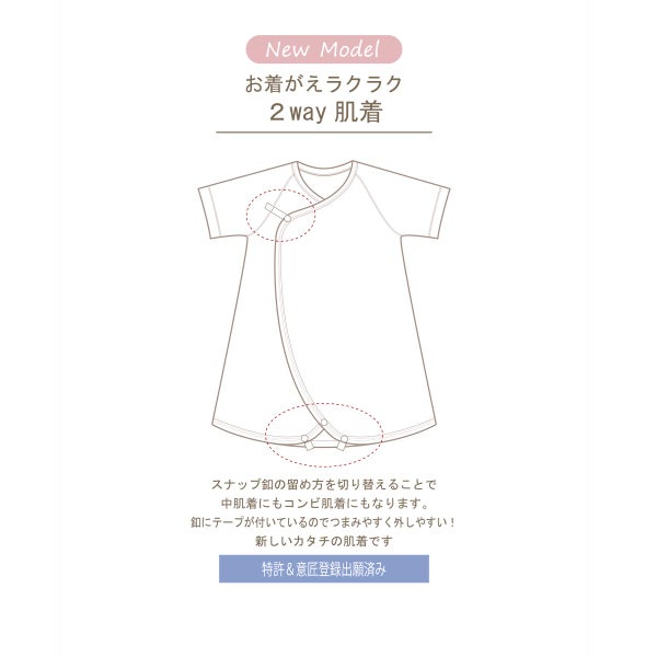 股のボタン留めで中肌着とコンビ肌着の2通りに使える仕様。