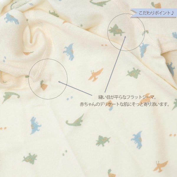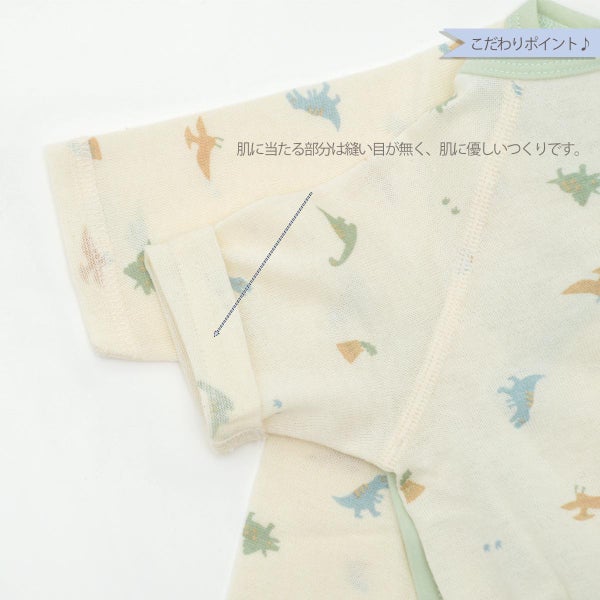オーガニックコットン ベビー吊天竺 2wayコンビ肌着 恐竜