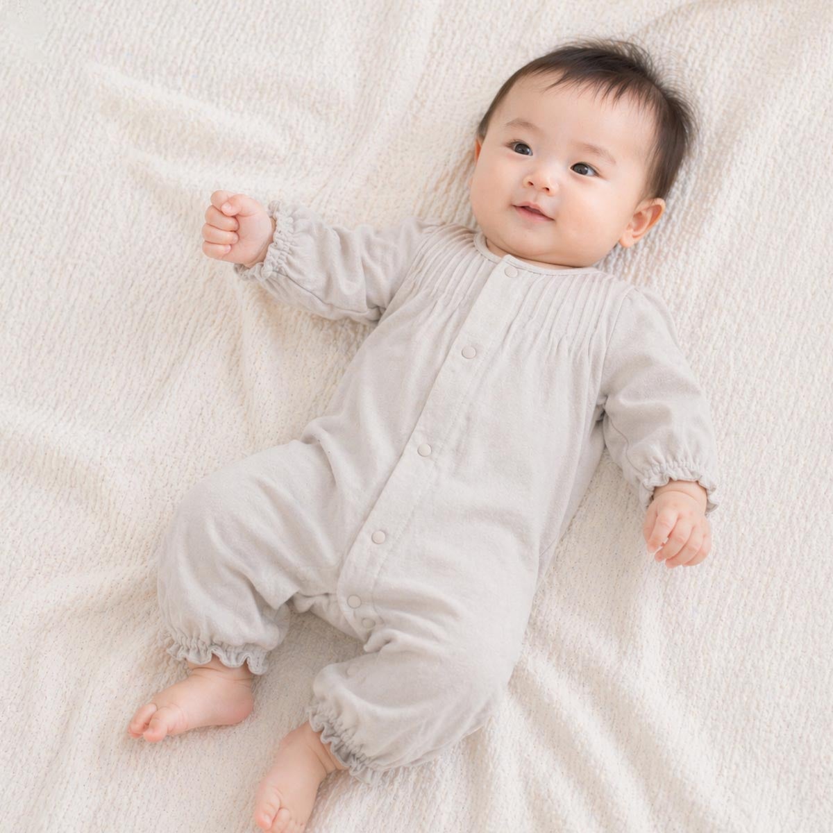 繊細な赤ちゃんのお肌にやさしいオーガニックコットンで作られたツーウェイオールをご用意いたしました。