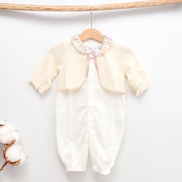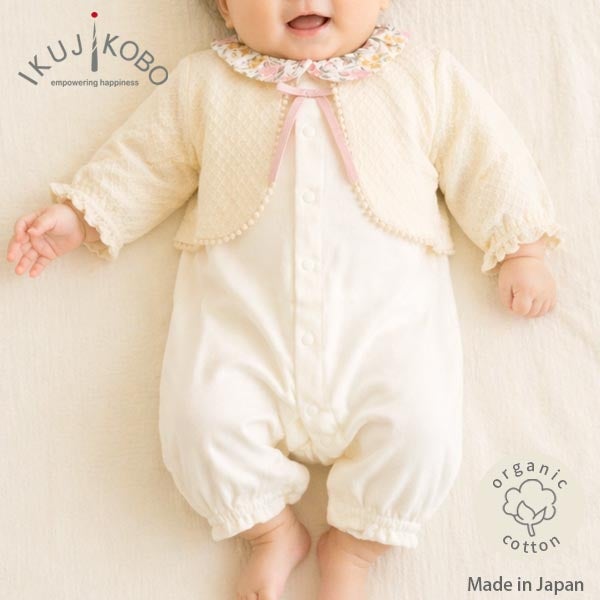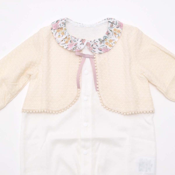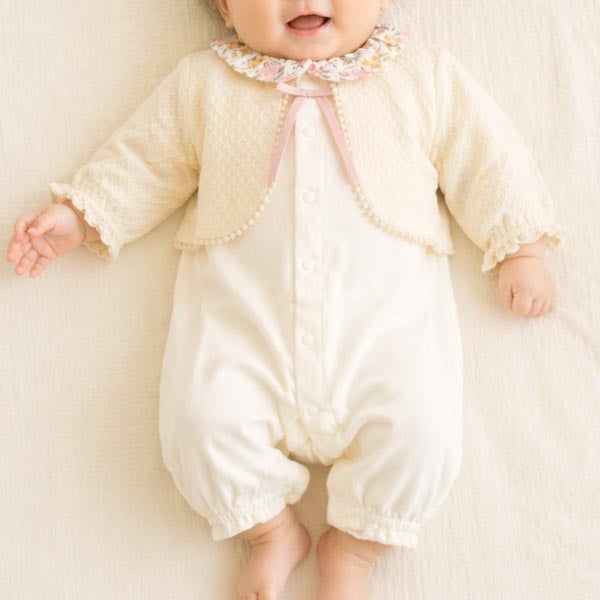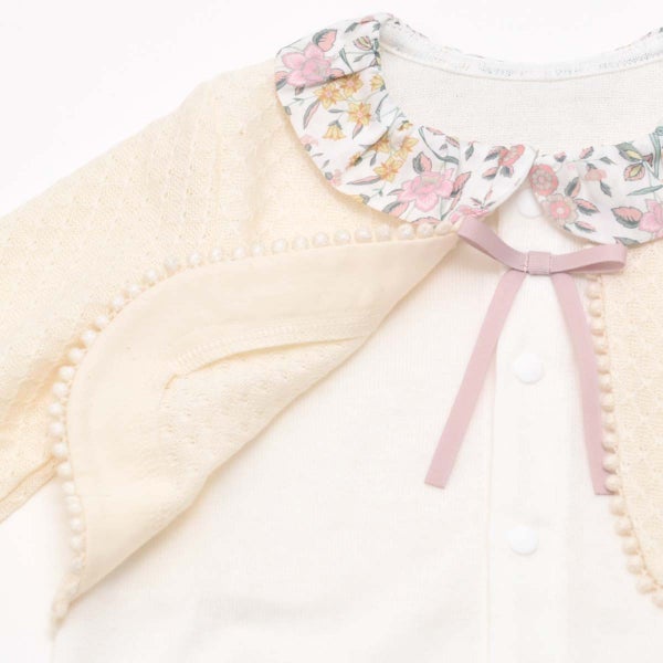 カーディガンを重ねたような上品なデザインは、退院やお宮参りといった大切な一日にもお使いいただけます。
