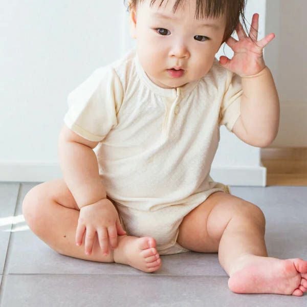 オーガニックコットン ベビー アイレット柄ボディースーツ(半袖) ナチュラル 70