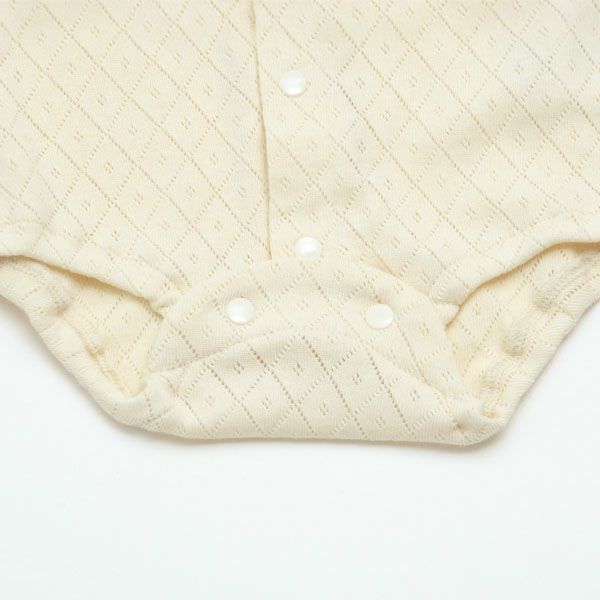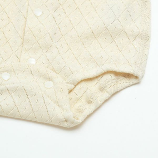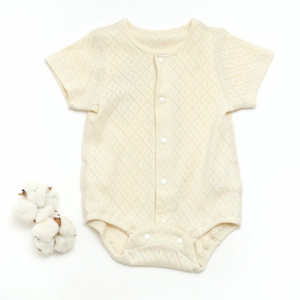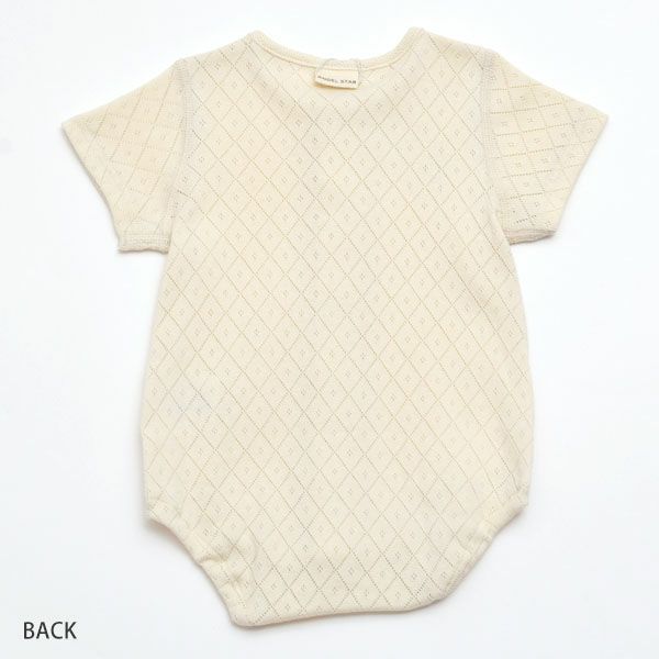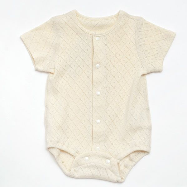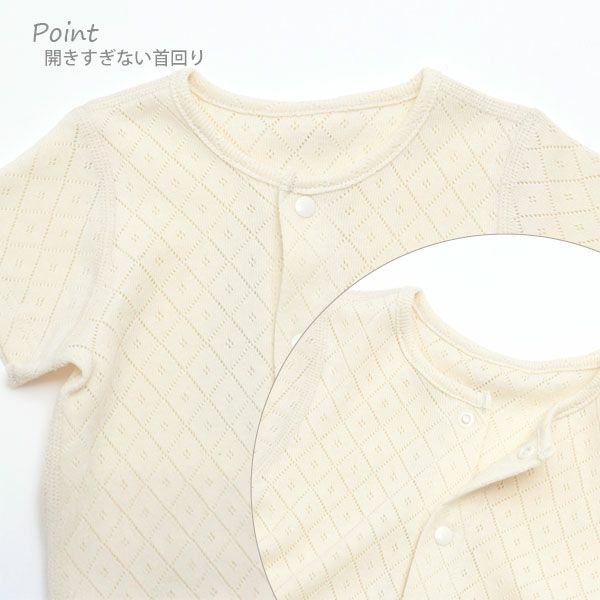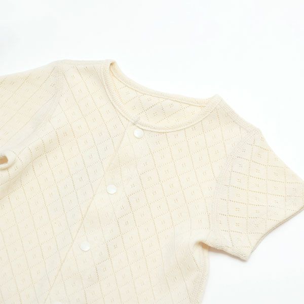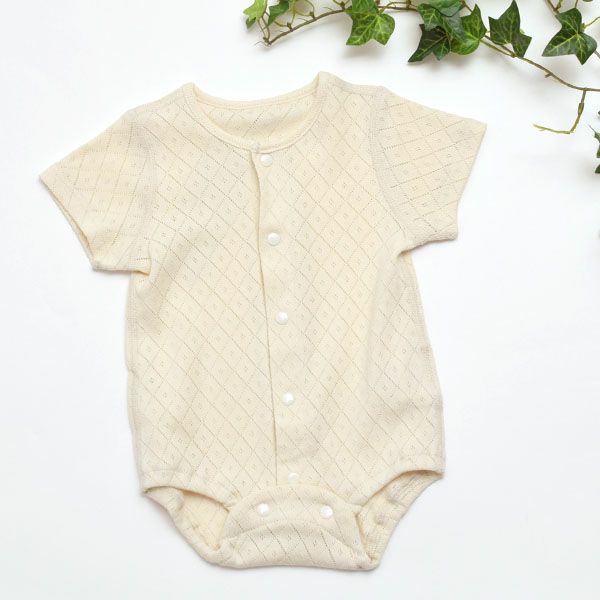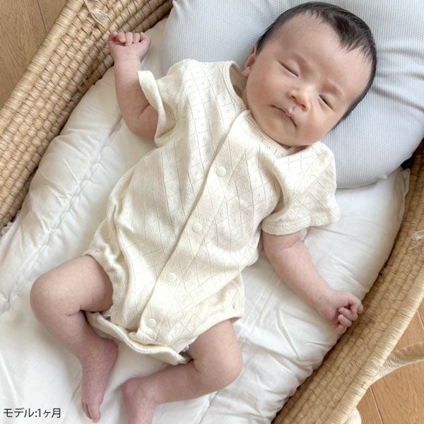 透かし模様が綺麗な通気性の良い半袖ロンパース。