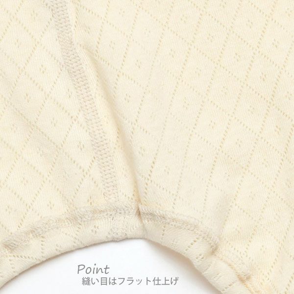 赤ちゃんのお肌はとってもデリケートなので、縫い目はフラット仕上げで優しい肌あたりです。