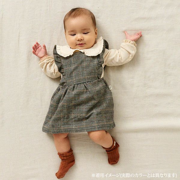 素材違いのフリル付き丸襟が可愛らしく、ブラウス代わりに着用できます。