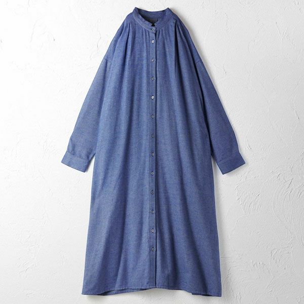 オーガニックコットン フランネルスタンドカラーワンピース