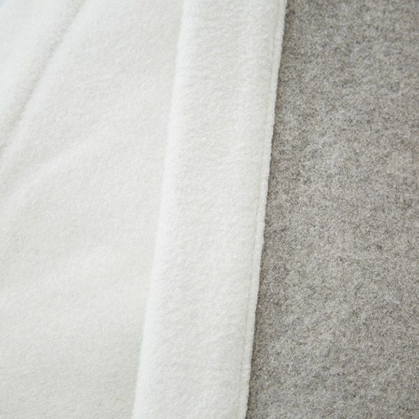 表はヤク混のグレー、裏はオーガニックコットンのナチュラルカラーになるように織ったWフェイス。