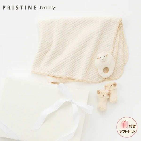 オーガニックコットン ひつじガラガラ&ソックス&ケットセット
