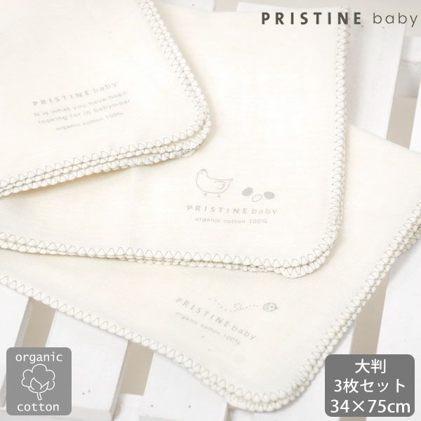 PRISTINE(プリスティン)のオーガニックコットン やわらか沐浴ガーゼ3枚セットです。