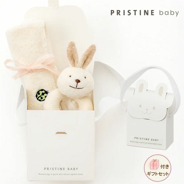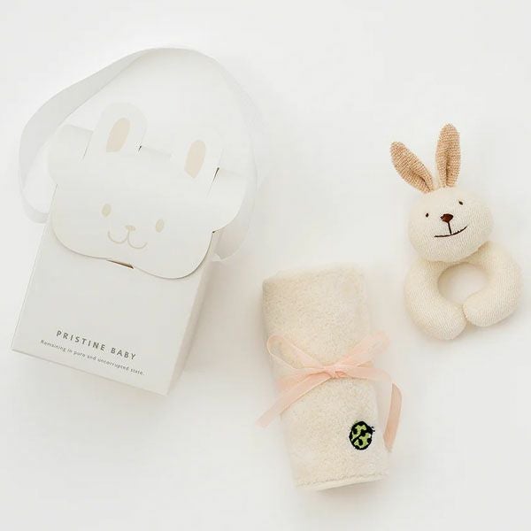 うさぎのがらがらと、ミニタオルの2点が入った、可愛いパッケージ入りのギフトセット♪
