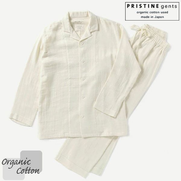 Pristine gents(プリスティン・ジェンツ)のオーガニックコットン 綾Wガーゼ前開きメンズパジャマです。