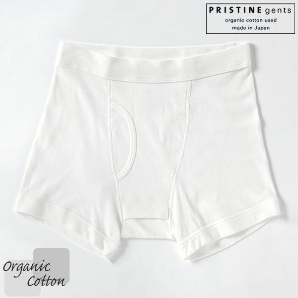 Pristine gents(プリスティン・ジェンツ)のオーガニックコットン 追撚フライス ボクサーショーツです。