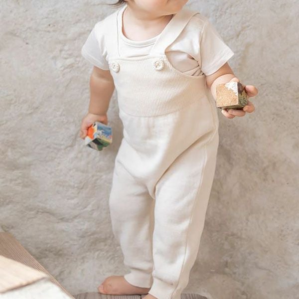 Amorosa mamma(アモローサマンマ) のオーガニックコットン ベビーニットサロペット 編みボタン です。