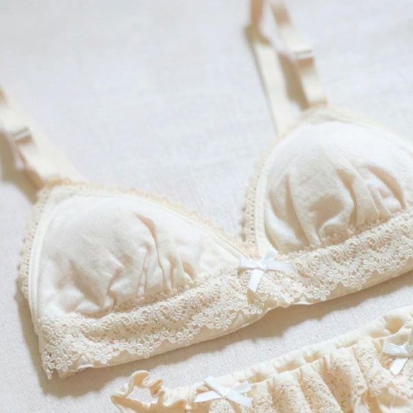 オーガニックコットン 三角ブラ ノンワイヤー レース