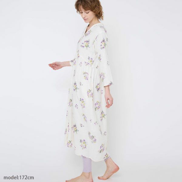 オーガニックコットン カラーガーゼローズマリーロングドレス