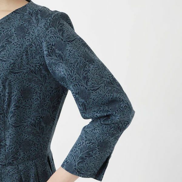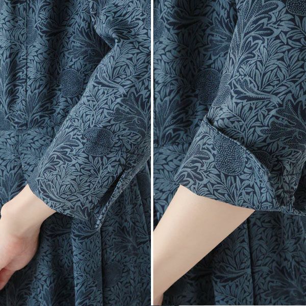 オーガニックコットン V&A サテンミディドレス アップル柄