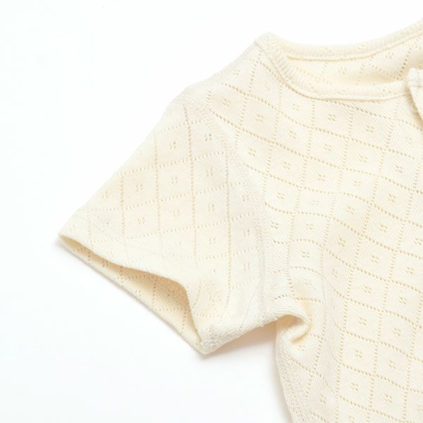 透かし模様が綺麗な通気性の良い半袖ロンパース。