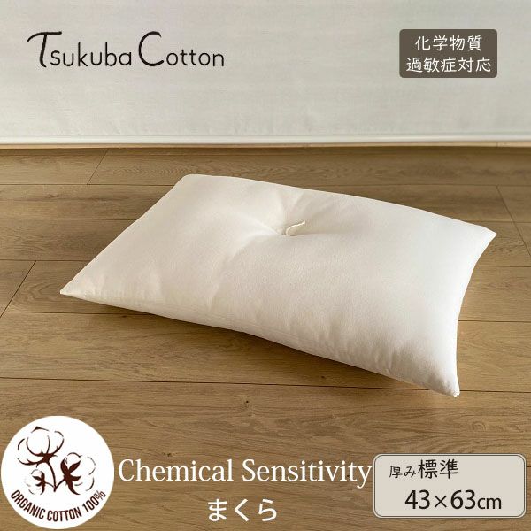 【受注生産】オーガニックコットン100%の化学物質過敏症の方対応の枕 オーガニックコットン CS対応 まくら 標準タイプ 43×63