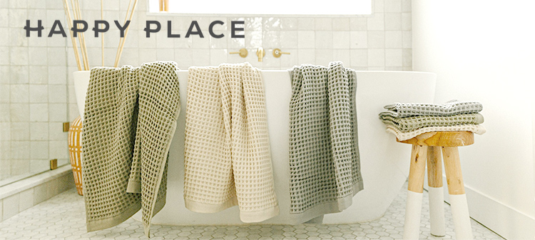 アメリカ・ワシントン発のサスティナブルラウンジウェアブランドHAPPY PLACEのオーガニックコットン ソフトワッフルバスタオルです。