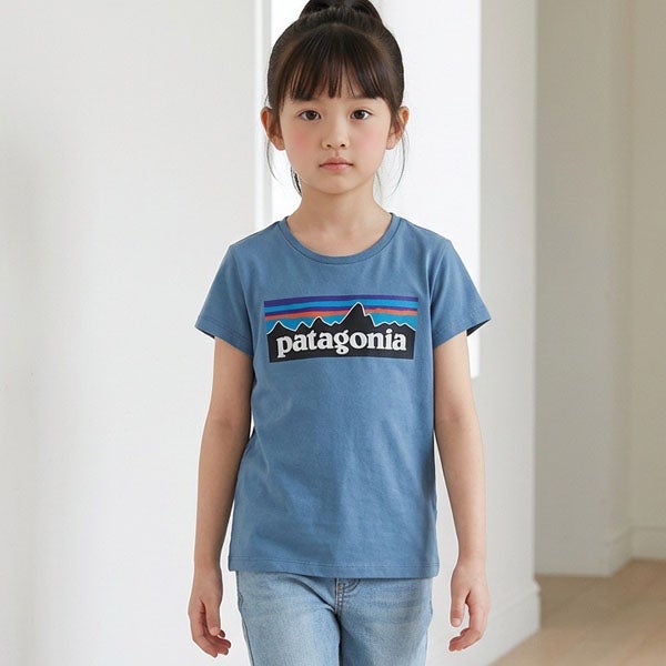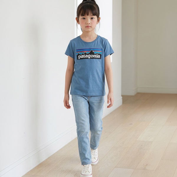 patagonia(パタゴニア)のオーガニックコットン ガールズ・リジェネラティブ・サーティファイド・P-6ロゴ・Tシャツです。