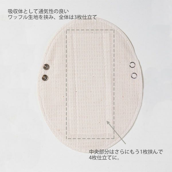 吸収帯として通気性の良いワッフル生地を全体に挟んで3枚仕立てに。