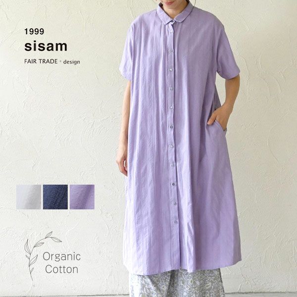 sisam(シサム工房)のオーガニックコットン サッカーストライプ半袖ワンピースです。