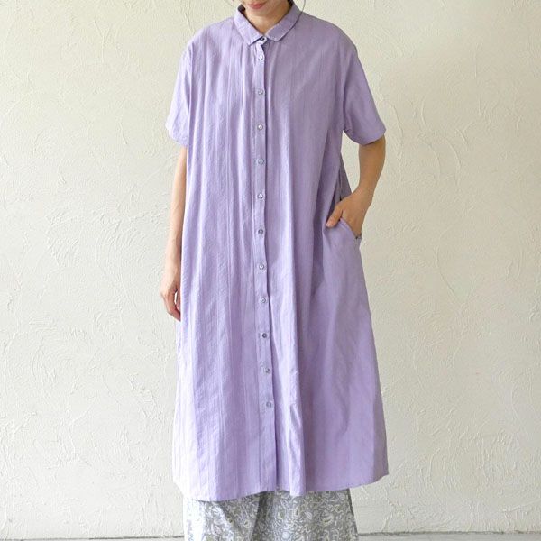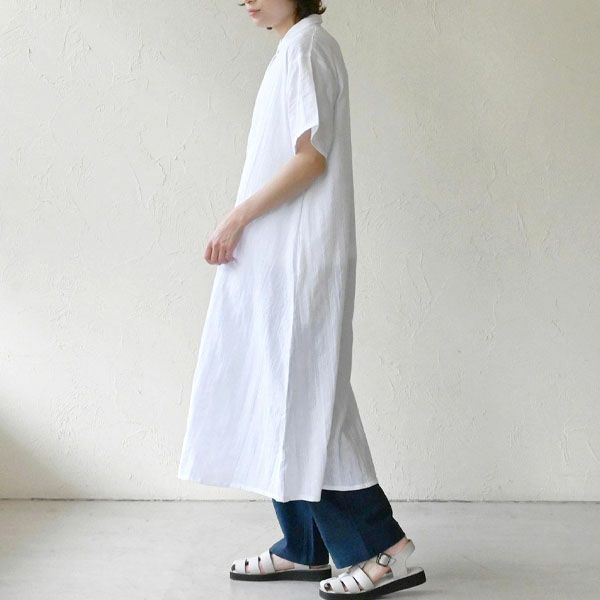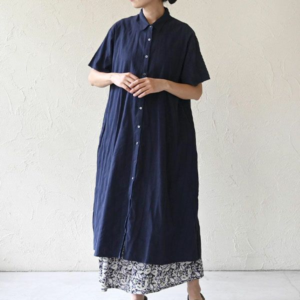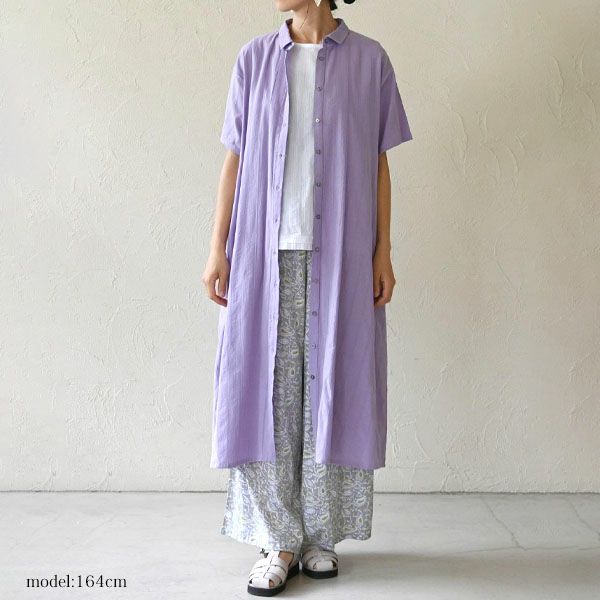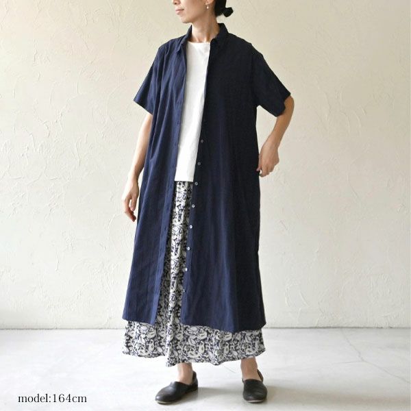風をやさしく通すさらりとした素材感でふわりと身体を包み込み、暑い季節も心地よく過ごせる一枚です。