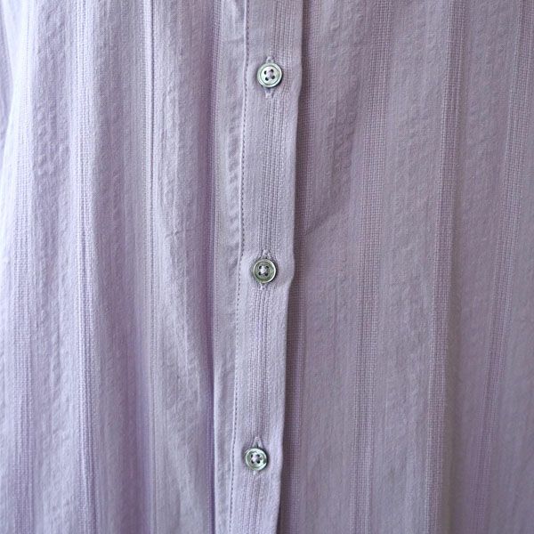 サッカーストライプと極小メッシュの2種類の織りを組み合わせた、表情豊かなストライプ生地。