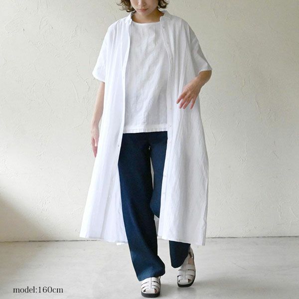 程よいゆとりのある身幅で身体のラインを拾いにくく、風を通して涼やか。