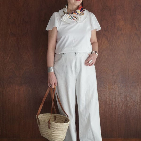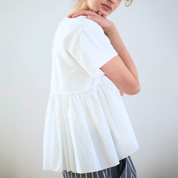 オーガニックコットン Vネックボックスプルオーバーブラウス