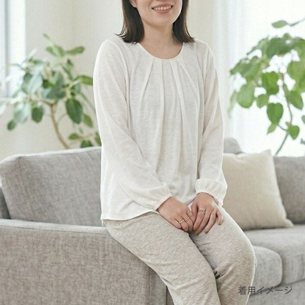 オーガニックコットン&リネン ダブルガーゼシャツ(8分袖) M