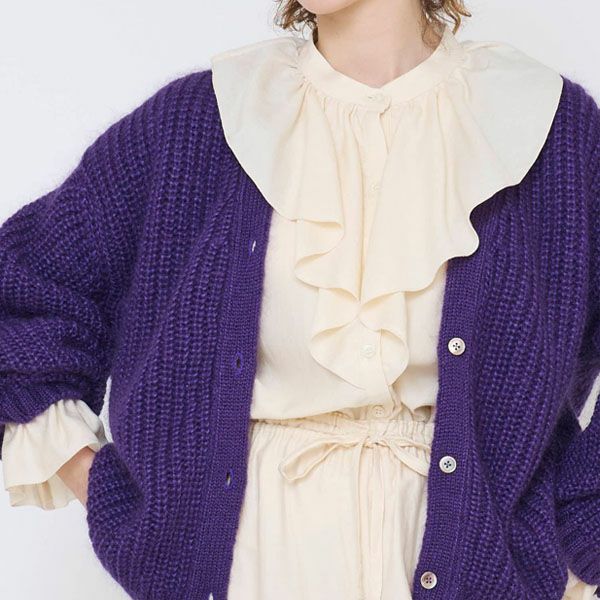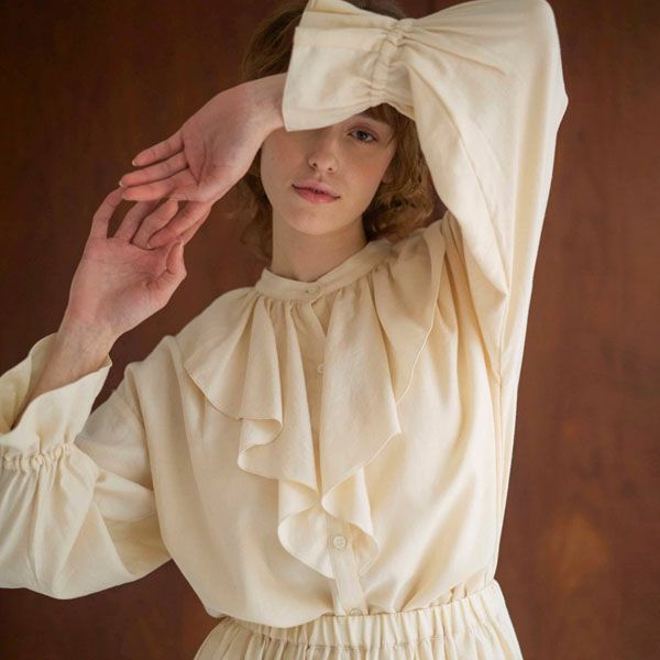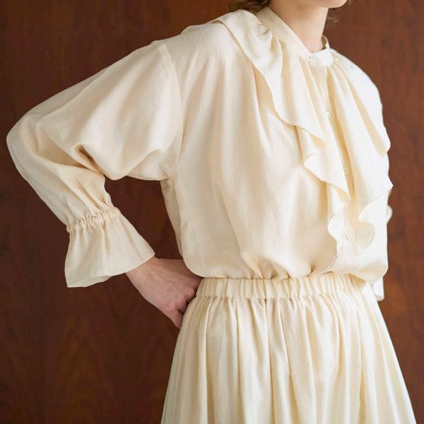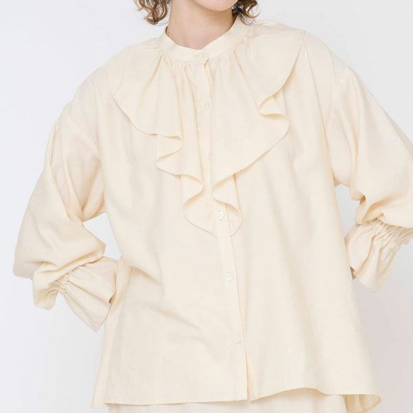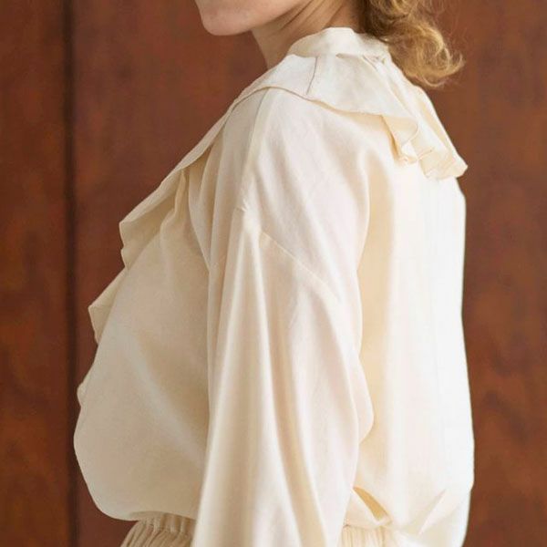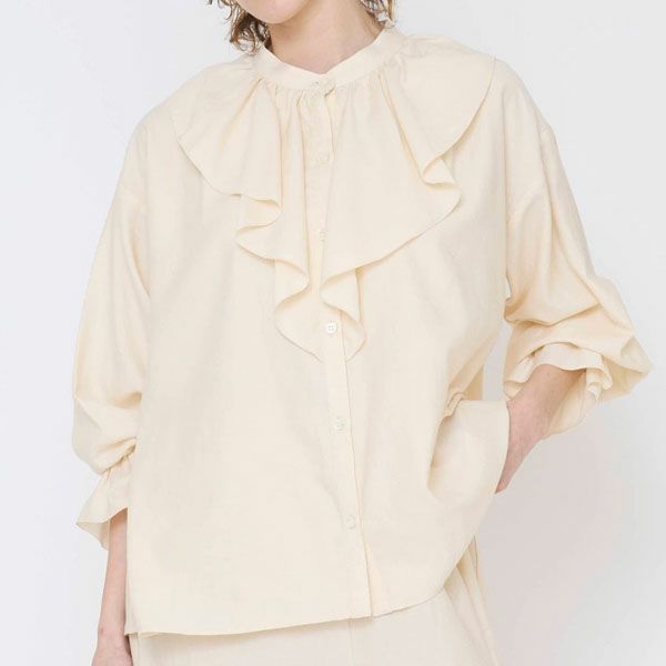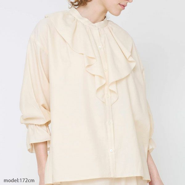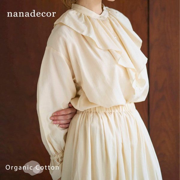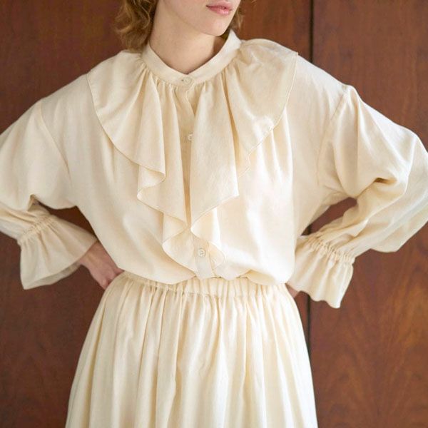 オーガニックコットン ラッフルネックポプリンブラウス Anna