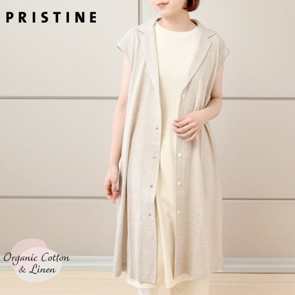 PRISTINE(プリスティン)のオーガニックコットン&リネンプレーティング天竺ロングジレです。