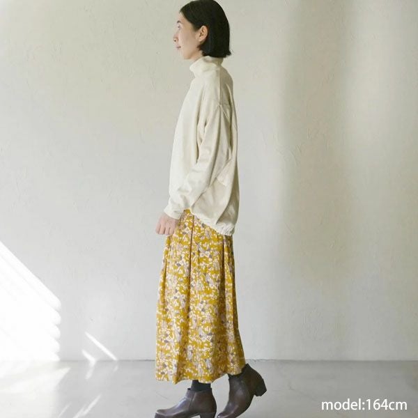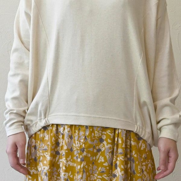 サイドのギャザーと切り替えで、ゆったりとしたシルエットに。