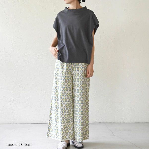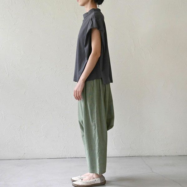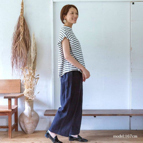 ゆったりとした身幅に、肩先をふんわりと覆うフレンチスリーブのような袖デザインは、大人のリラックス感と女性らしさを両立してくれます。