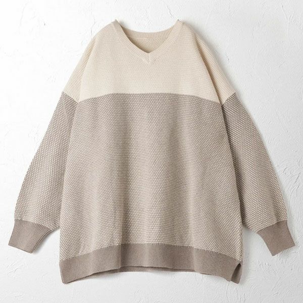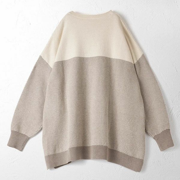 鹿の子編みをベースに、二色の糸の取り本数を変化させることで、自然なグラデーションを表現しました。