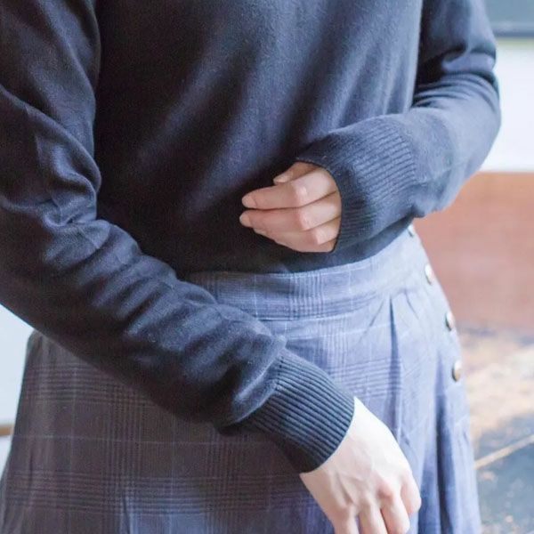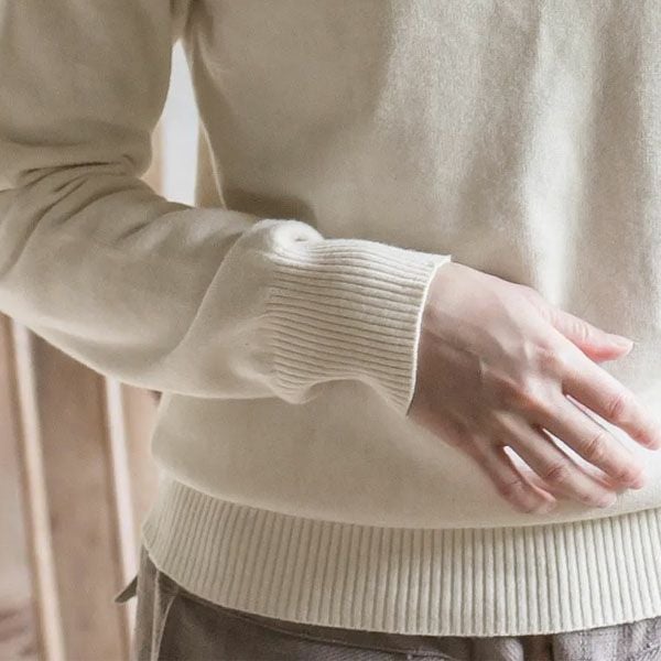 体にやさしく沿う生地感で、重ね着もしやすく、合わせるアイテムのシルエットを邪魔しません。