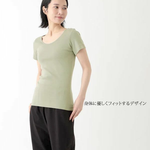 オーガニックコットン エアリーノースーブリブトップス