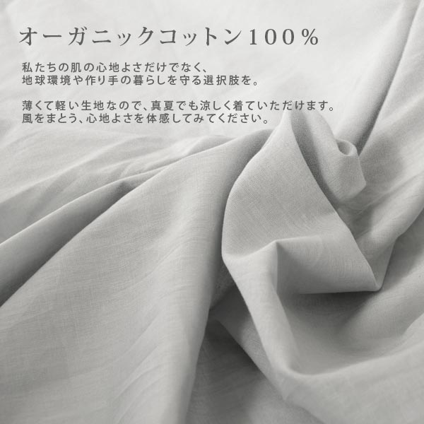 ●漂白・染色・プリントを行っている生地につきましては、オーガニックコットン認証基準に基づいて製造され、化学薬品の使用を極力抑えたものとなっております。