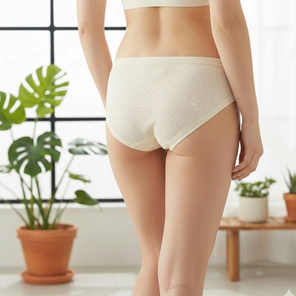 無染色・無漂白のきなり素材で、縫製糸もオーガニックコットン糸を使用した綿100%のショーツです。