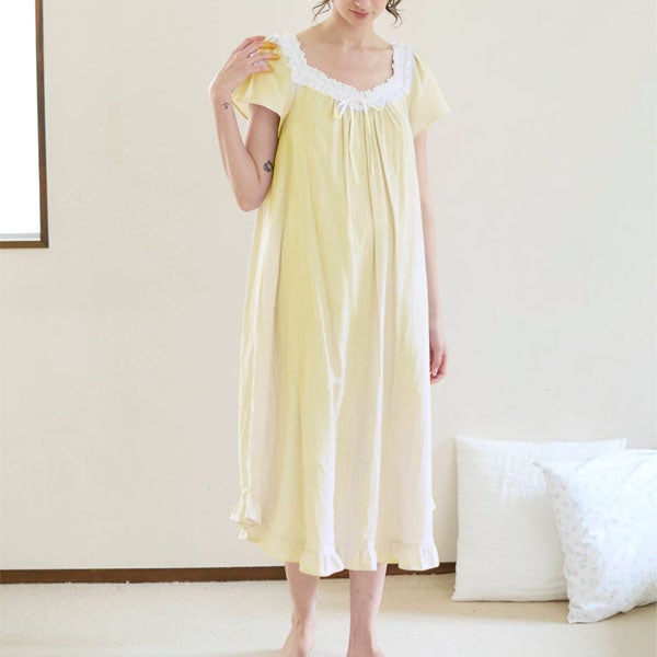 オーガニックコットン&リネン ダブルガーゼ湯上がりワンピース グレー M