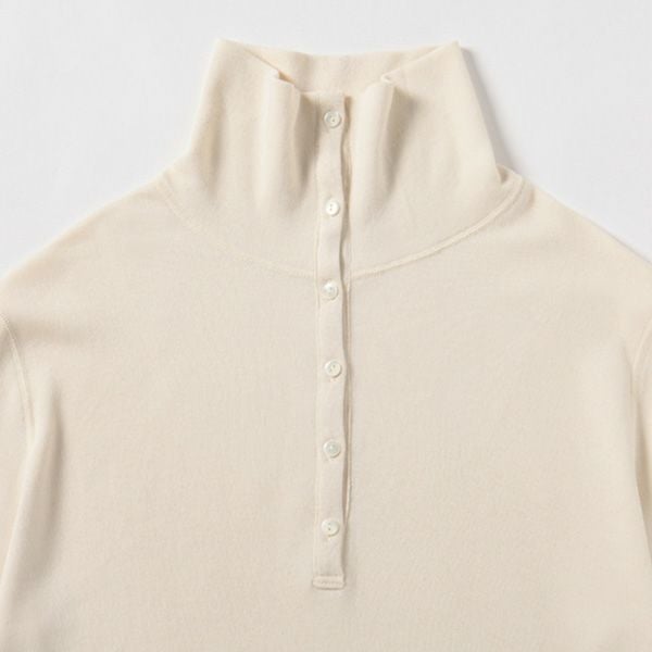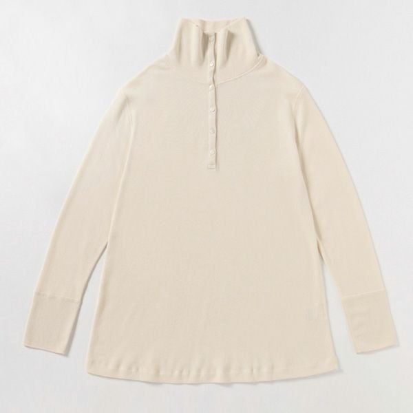 柔らかい生地で肌触りが良く温かい。ハイネックが首元の寒さ対策になります。