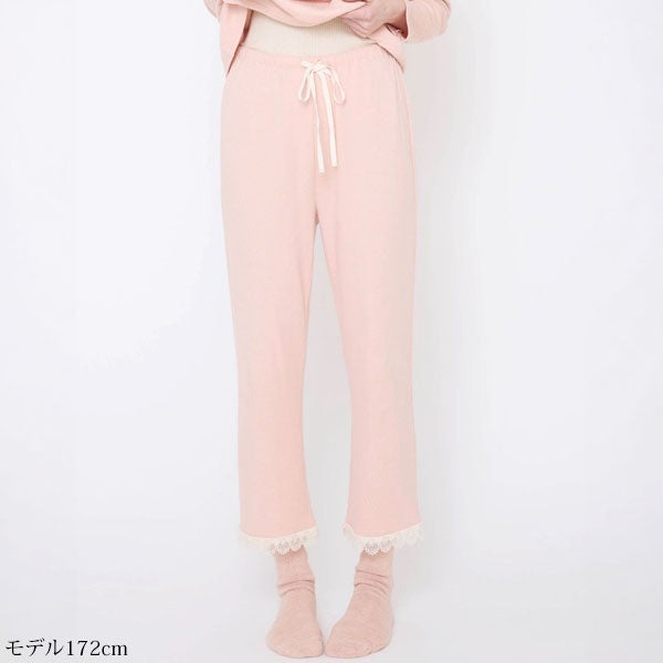 しっとりやわらかな肌触りで、透かし模様が可愛い接結素材を使用したロングパンツ。