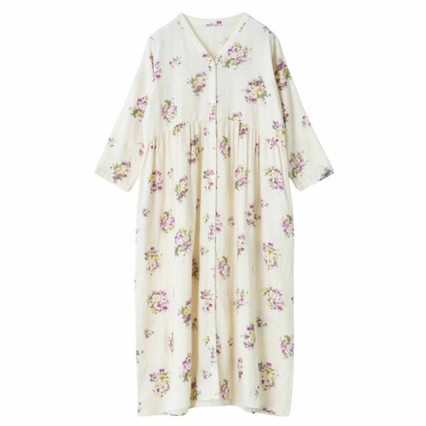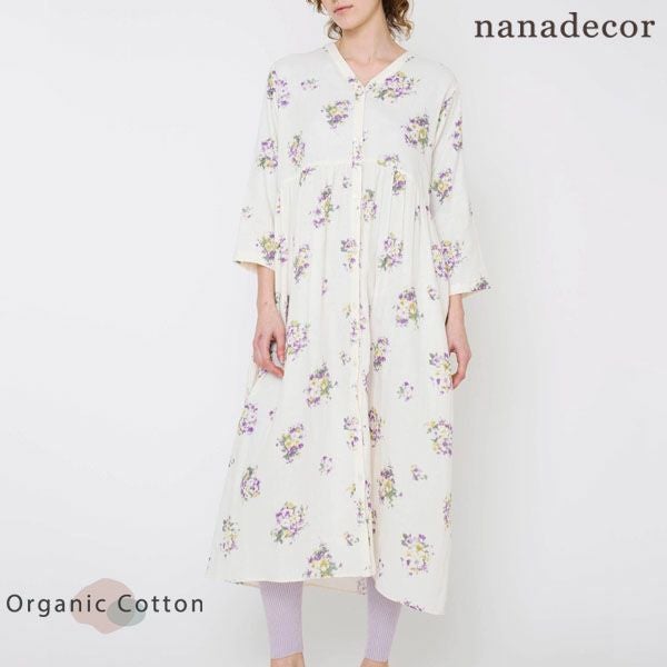 オーガニック 綿100% ルームウェア ワンピース 前開き