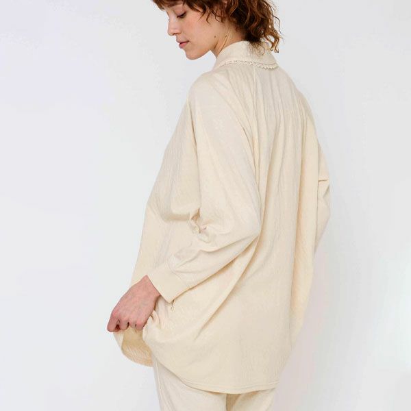オーガニックコットン サテン前開きパジャマ ナチュラル M