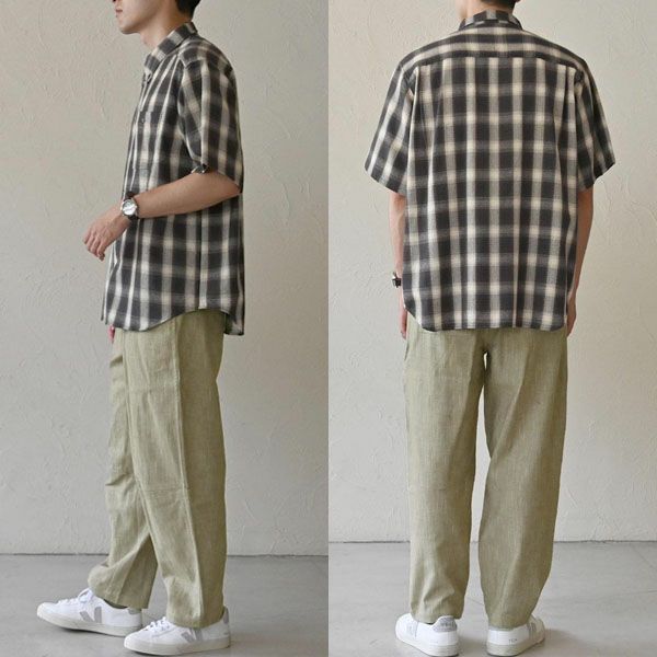 ワークパンツらしい無骨さを残しつつ、知的な雰囲気も兼ね備えた万能カラーです。