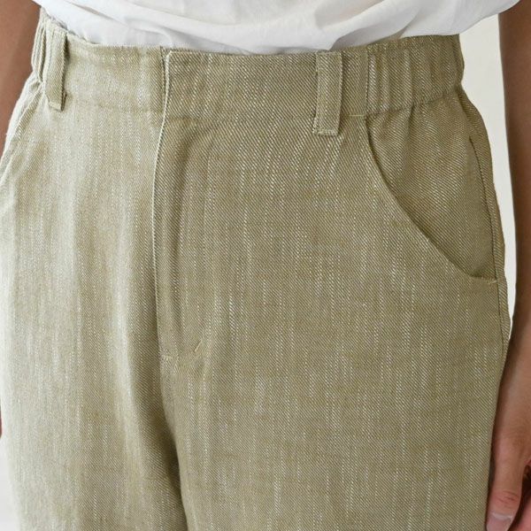 ウエスト周りはスッキリと見せつつ、背面をゴム仕様にすることで、快適な穿き心地を実現しています。