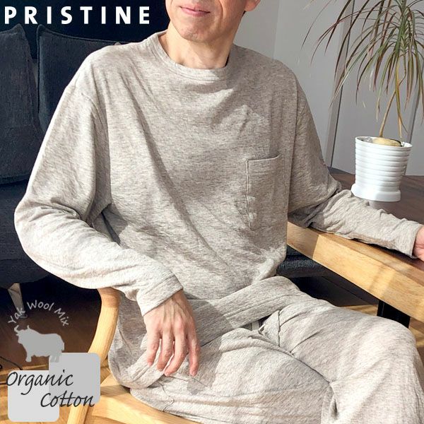 Pristine gentsのオーガニックコットン&ヤク メンズエアニットクルーネック長袖プルオーバーです。